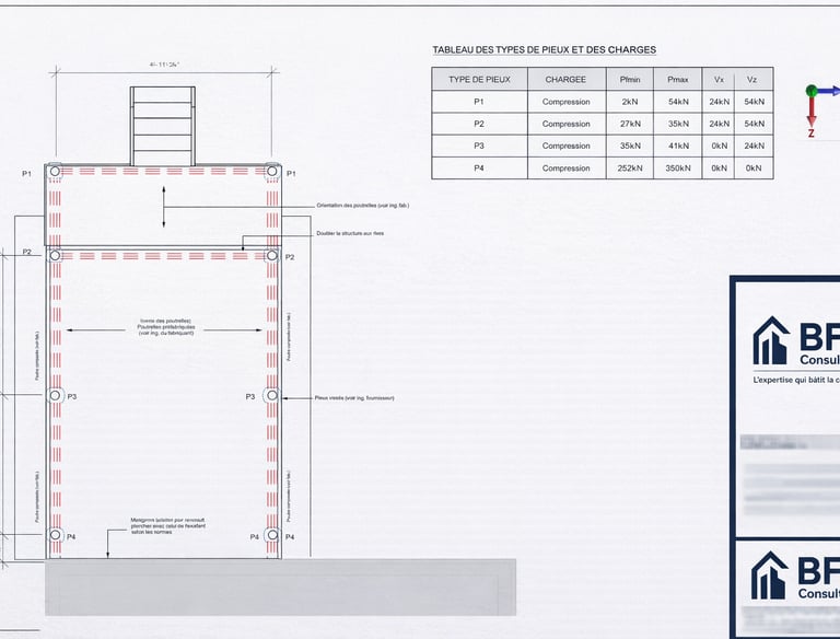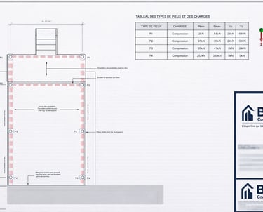 Dalles, fondations et pieux — plans structuraux estampés conformes aux exigences en vigueur pour vos projets.