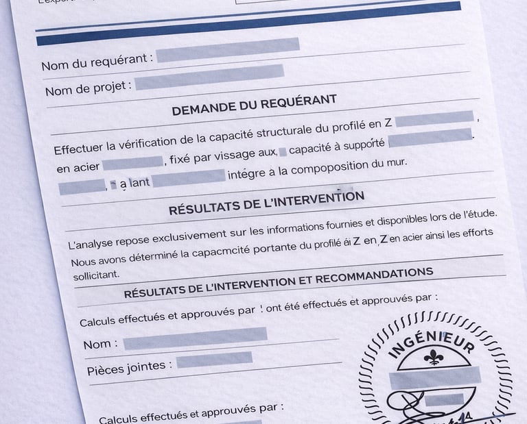 Notre équipe de 3 ingénieurs membres de l'OIQ prend en charge votre demande en 24 heures et à livrer des plans structuraux estampés dans des délais rapides, adaptés à la complexité de votre projet. Dalles, fondations, pieux, attestations techniques. Nous traitons votre dossier avec rigueur et rapidité, partout au Québec